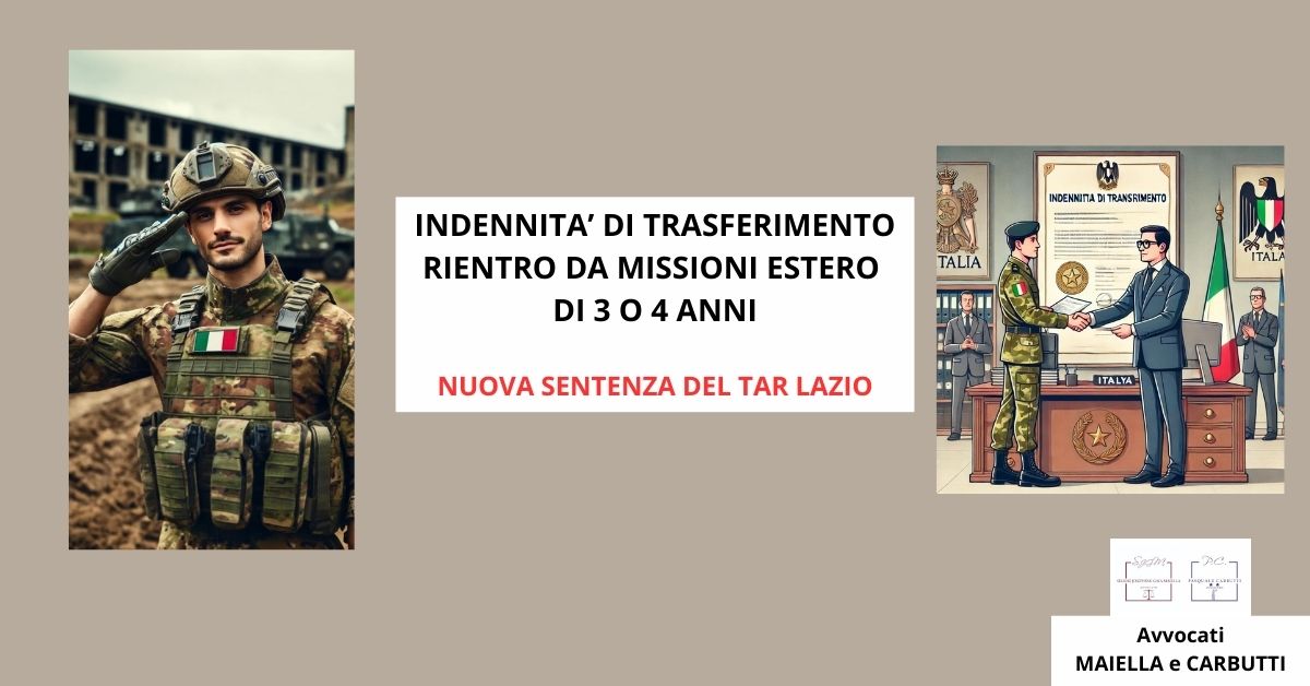 Negli ultimi giorni ha suscitato molto interesse una sentenza emessa nel giugno 2024 in materia di indennità di trasferimento per il personale delle Forze Armate rientrato dall'estero dopo un mandato di tre o quattro anni. Il caso riguarda coloro che, pur rientrando da incarichi svolti all'estero, sono stati trasferiti d'autorità in sedi diverse rispetto a quelle di provenienza. La questione centrale riguarda l'interpretazione delle leggi che regolano il diritto all'indennità in tali situazioni, tra cui la Legge 100 del 1987 e la Legge 86 del 2001.